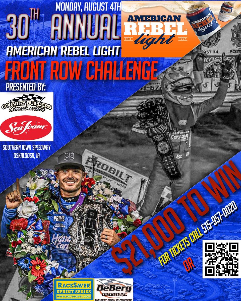 The 30th Annual American Rebel Light Front Row Challenge pres. by Country Builders Construction and SeaFoam Motor Treatment takes place on Monday, August 4 at the Southern Iowa Speedway in Oskaloosa, Iowa.